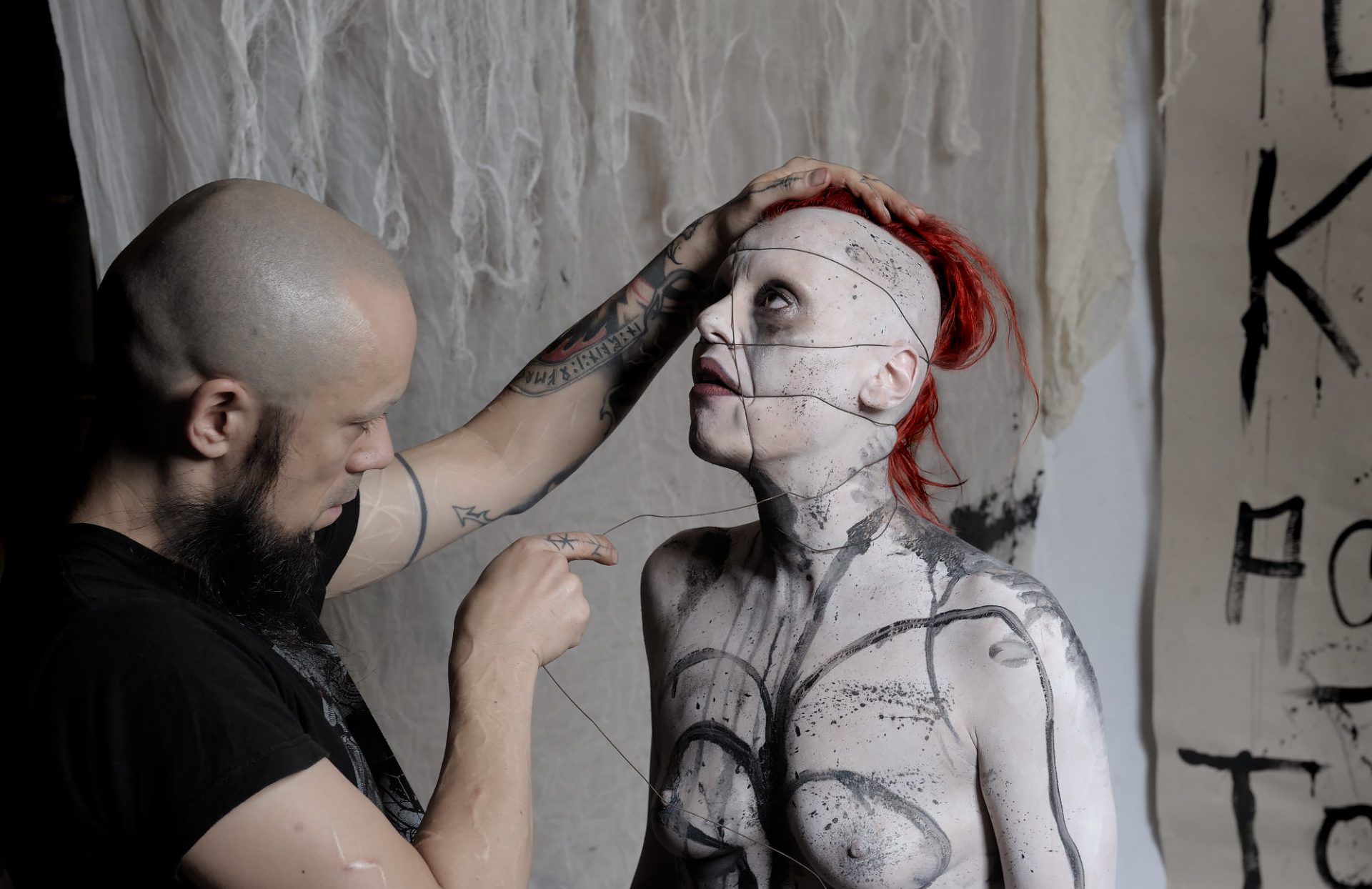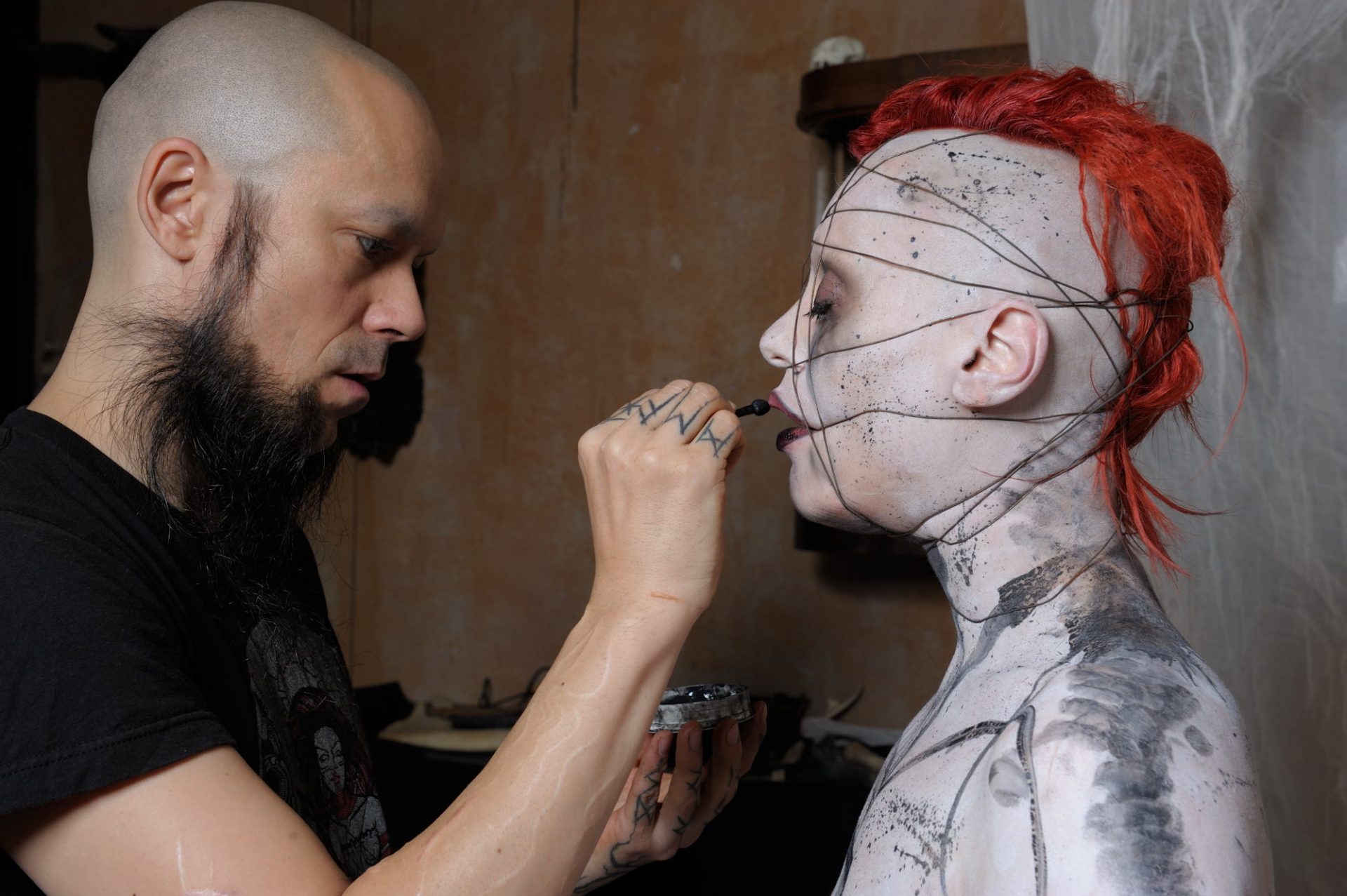 here turning Annika Liebe into a living sculpture for a shooting with Kron San.