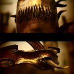 E: Sculpted leather neck corset with glas eye. Hand made in Berlin. Adjusable in the Back. Hand painted. Each piece is individual sculpted and painted, thus not 2 are alike. All pieces are engraved with the signature of the artist.